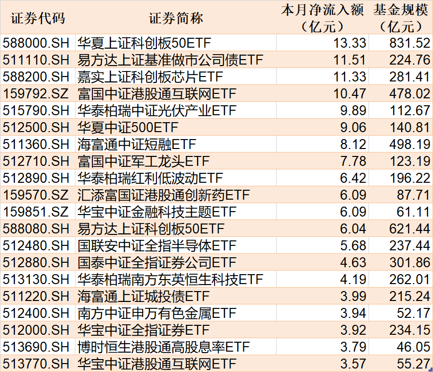 ETF规模速报 港股通互联网ETF净流入超5亿元沪深