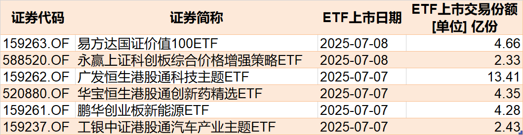 目前有6只ETF披露下周上市,跟踪标的为港股通汽车、创业板新能源、港股通创新药等。