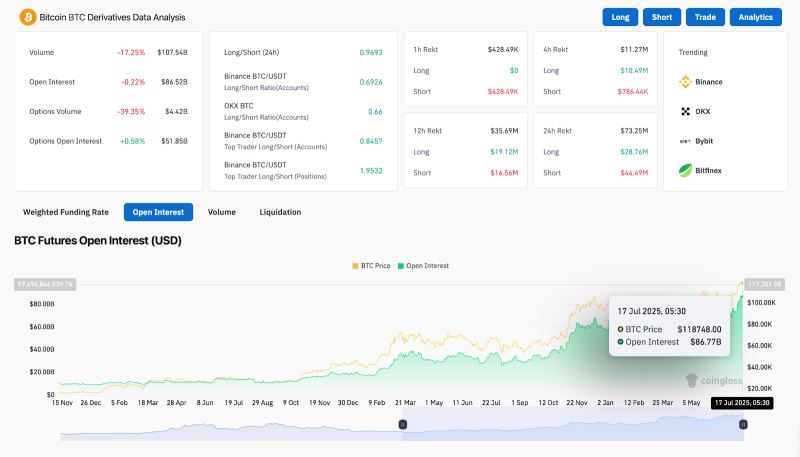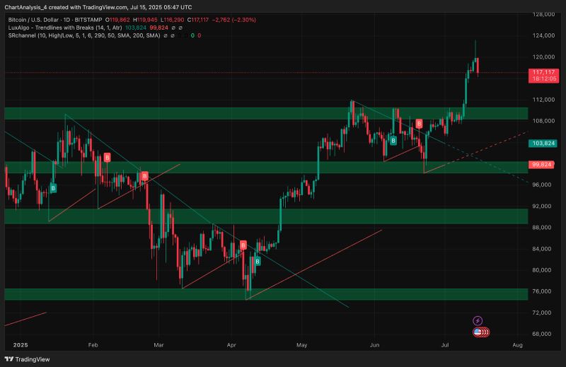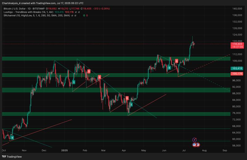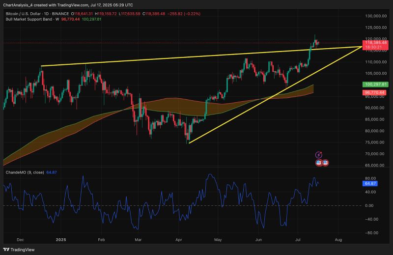比特币今日价格:随着势头在顶点以下停滞,BTC 能否重新收回 12 万美元?2025.7.17