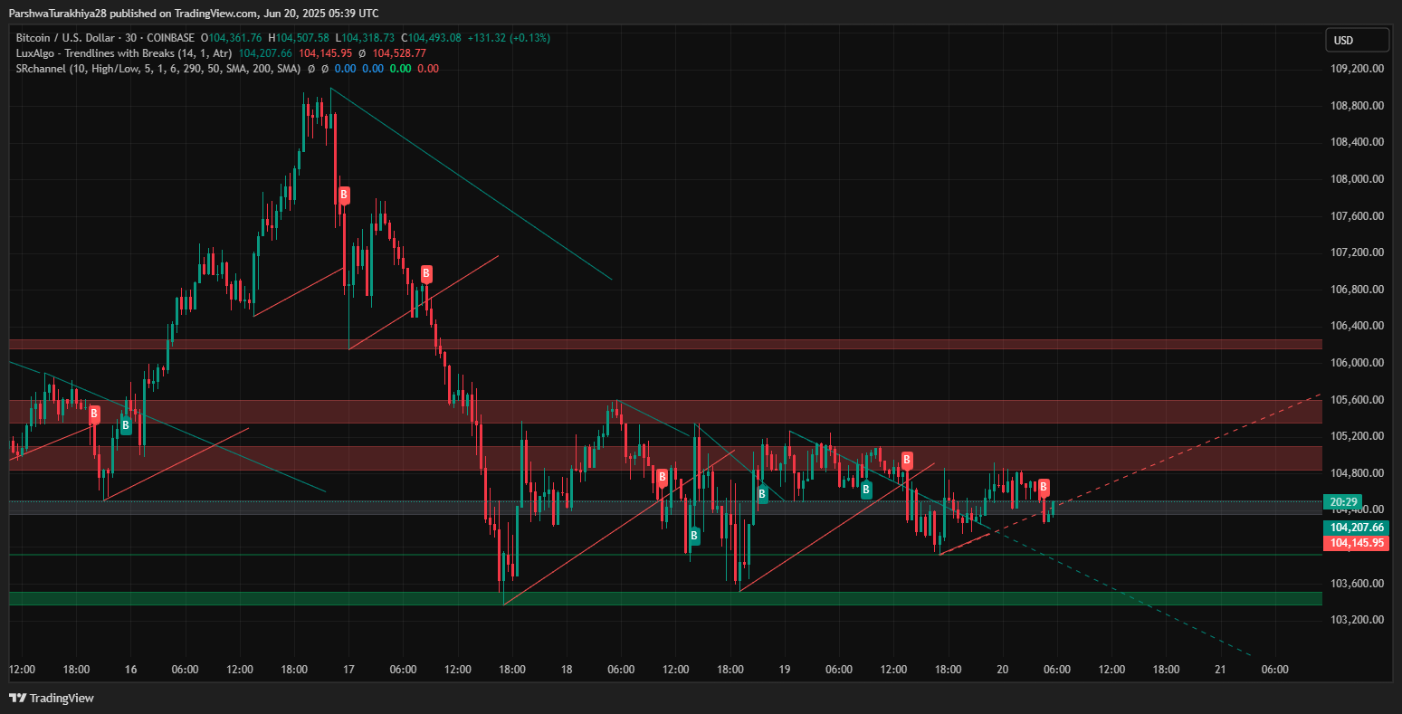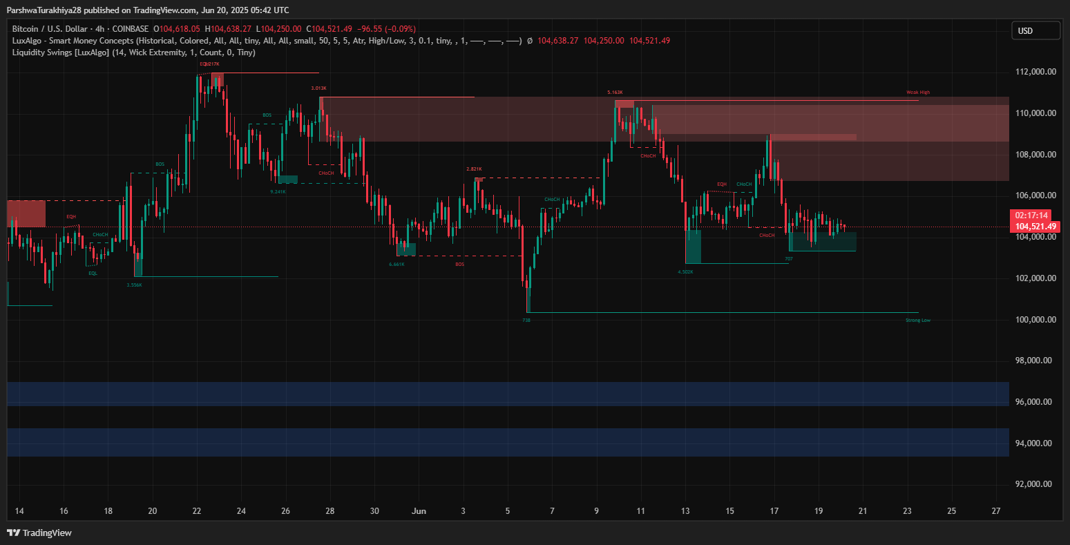 尽管遭到拒绝,比特币价格走势仍处于更广泛的看涨结构内。4小时图显示,自6月24日接近101,900美元的低点以来,BTC一直在不断创下新的低点。看涨的内部趋势线继续保持,如果当前压力持续,预计下一轮测试将在106,000美元附近。