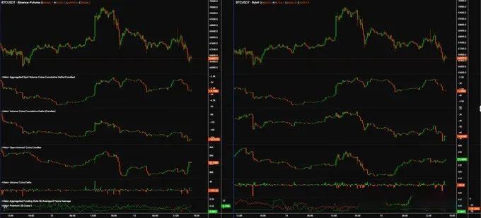 BTC币安Perp 和 Bybit Perp对比来看,永续合约市场表现出明显的对冲模式,目前空头受到青睐,不过,好消息是资金费率较低且现货溢价持续更久,意味着泡沫正在离开市场。