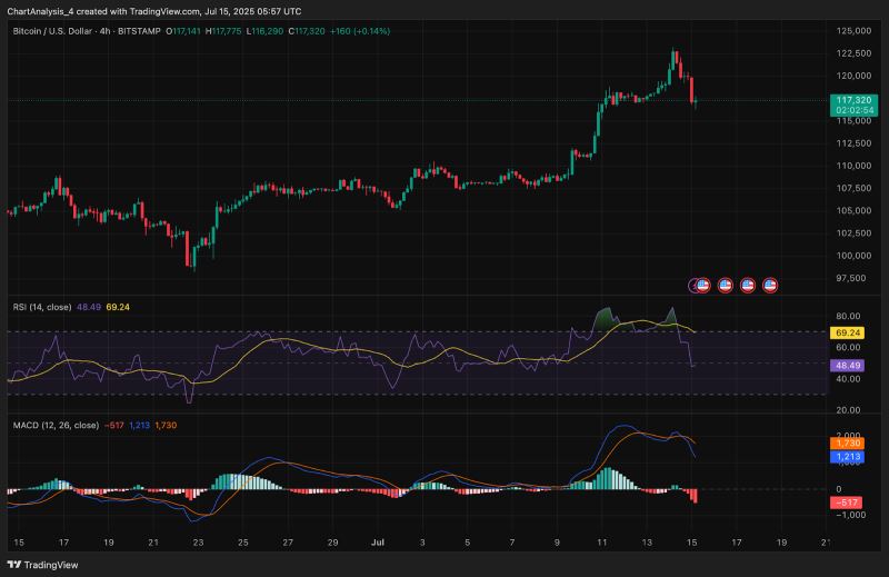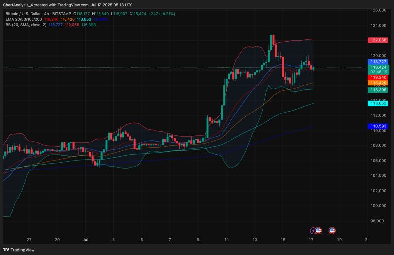 此外,4小时图上的EMA显示出聚集的早期迹象。20日EMA在118,334美元处开始下行,而50日EMA和100日EMA分别在115,408美元和112,471美元处,如果当前水平失守,可能会成为动态支撑位。