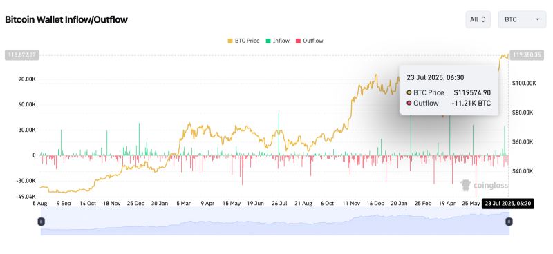 除此之外,Coinglass 钱包数据显示,比特币流出量短期内出现激增,上一交易日有超过 11.2K BTC 流出钱包,暗示出现温和的获利回吐。