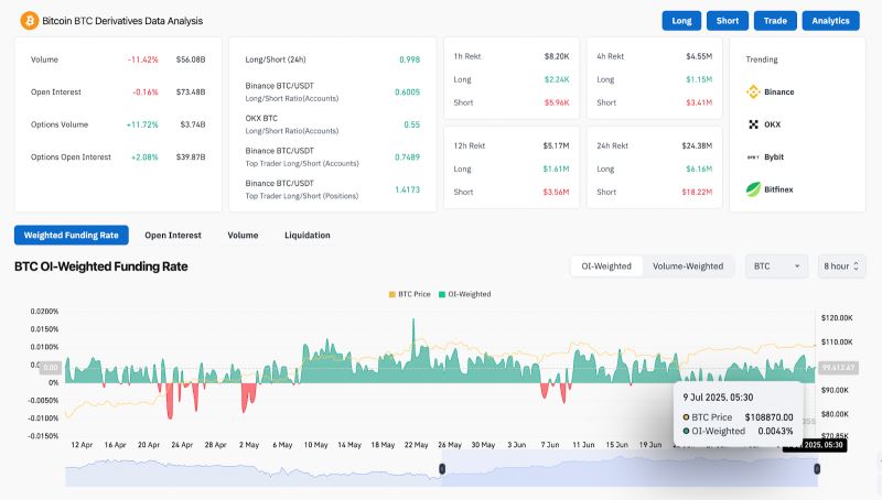 然而,现货净流量仍然为负,截至 7 月 8 日,流出资金为 1.4865 亿美元,表明尽管价格受到支撑,但仍有获利回吐或资金从交易所流出。