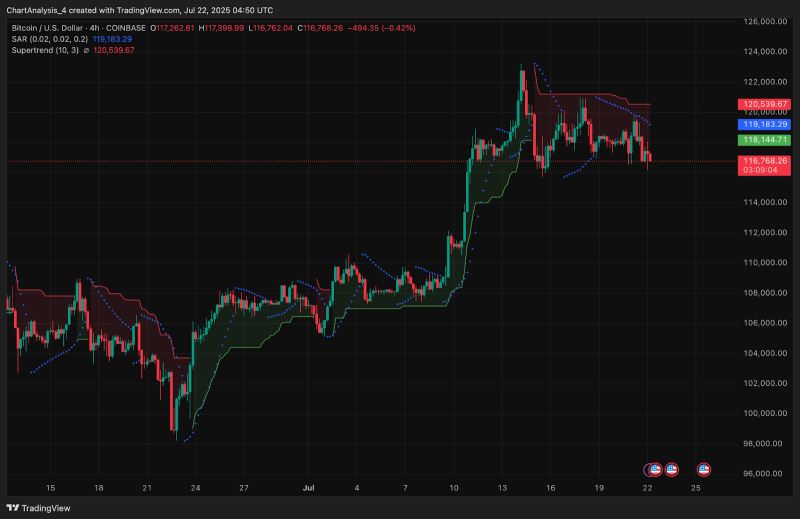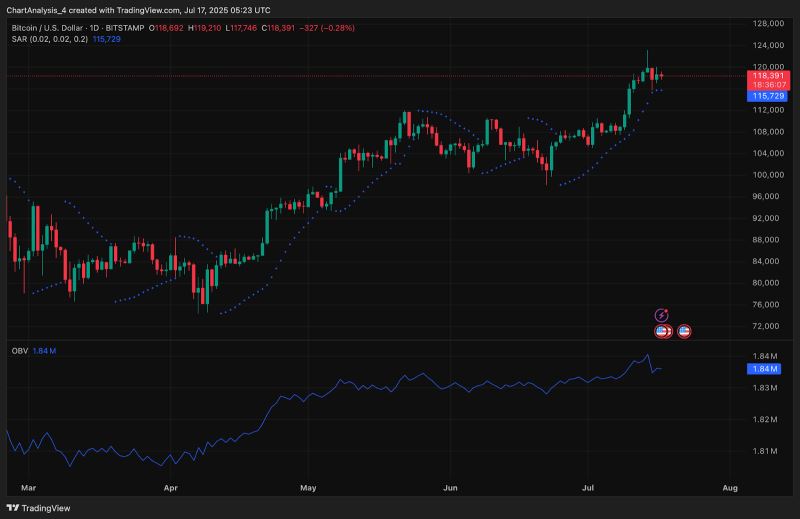 尽管EMA和抛物线转向指标提供了趋势支撑,但OBV走弱和波动性风险上升可能促使价格在持续突破之前出现短期回调。交易者应密切关注118,000美元至120,000美元区域,将其作为当前关键战场。