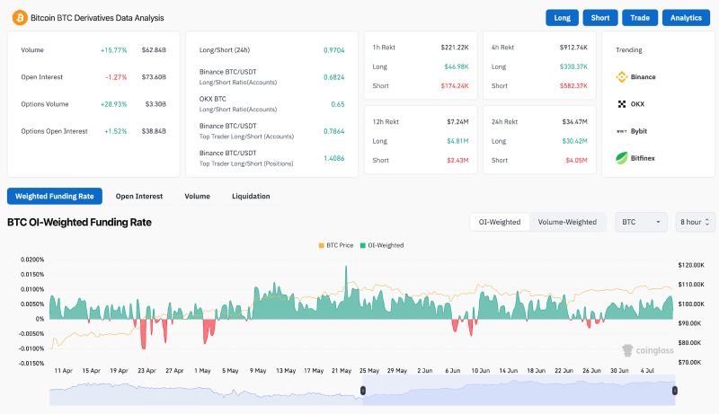 清算图表显示,7月1日多头仓位被抹去超过960万美元,空头仓位则在各交易所重新入场。这种不平衡暗示着,在进入新一轮交易期时,多头的谨慎程度有所提升。