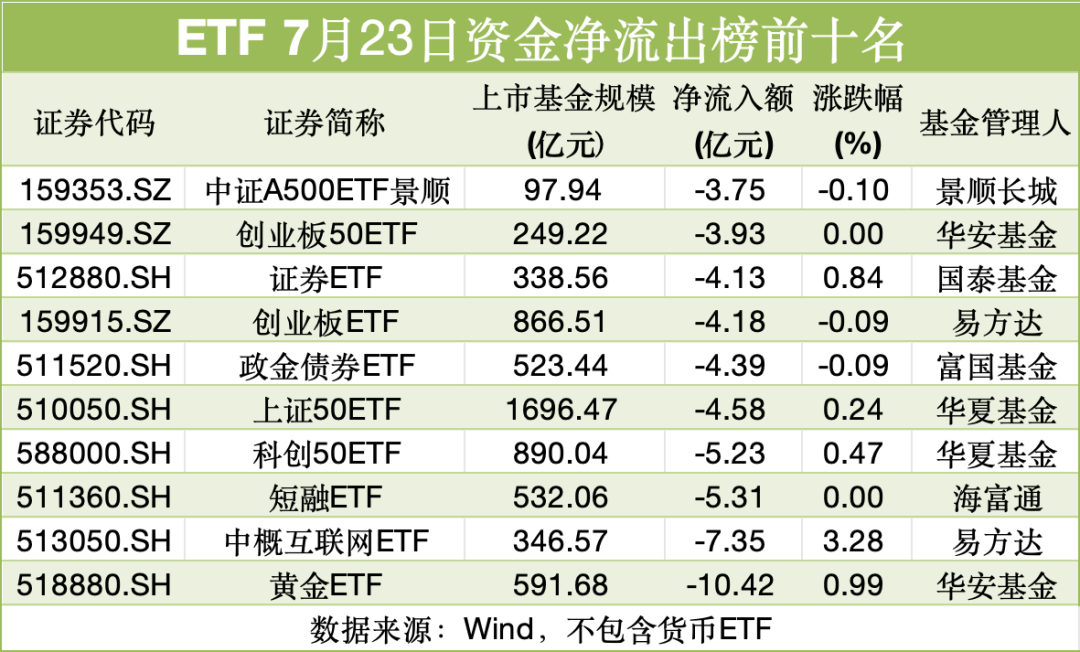 资金净流出方面,黄金ETF、中概互联网ETF、短融ETF等产品资金净流出较多。
