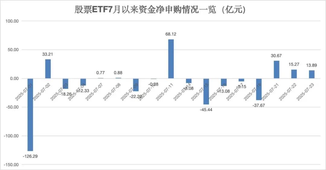 银河证券基金研究中心数据显示,7月23日,全市场股票ETF(含跨境ETF)资金净流入13.89亿元,这也是股票ETF市场连续第三个交易日出现资金净流入,三个交易日合计资金净流入逼近60亿元。