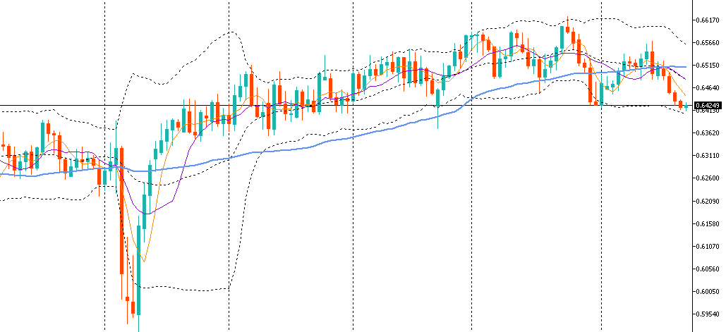 澳美继续走低,创近2个月来新低,日线小时空头动能有所减弱,但整体趋势仍偏弱,如于0.6440附近承压可继续进空。