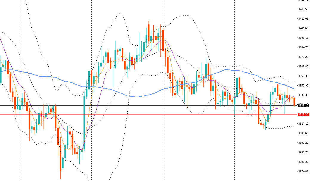 黄金微幅收跌,承压于10日均线附近支撑,短信趋势再度转弱,如于3340附近承压可进空。黄金/人民币可于771附近承压做空。