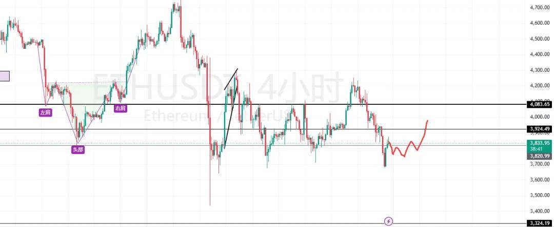 ETH短期回踩也是到了支撑位置附近,之后向上快速反弹了一波,不过目前来看力度偏弱,很大概率小级别还要现在回踩一下,关注下方3750-3730区间,到这个位置可以考虑入手多。
