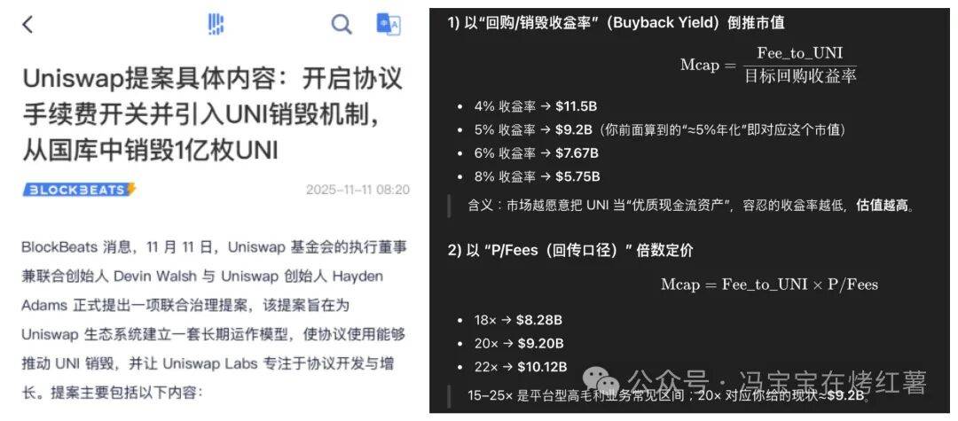 一次性销毁1亿枚(约10亿美元),并启动费用回购销毁机制,代币将持续减少。回购力度占年收入15-25%,过去一年收入达28亿美元。作为链上现货交易龙头,UNI具备溢价空间,币圈又添一枚价值币。商业模式稳健,用户心智强,即使规模涨10倍,成本不变。
